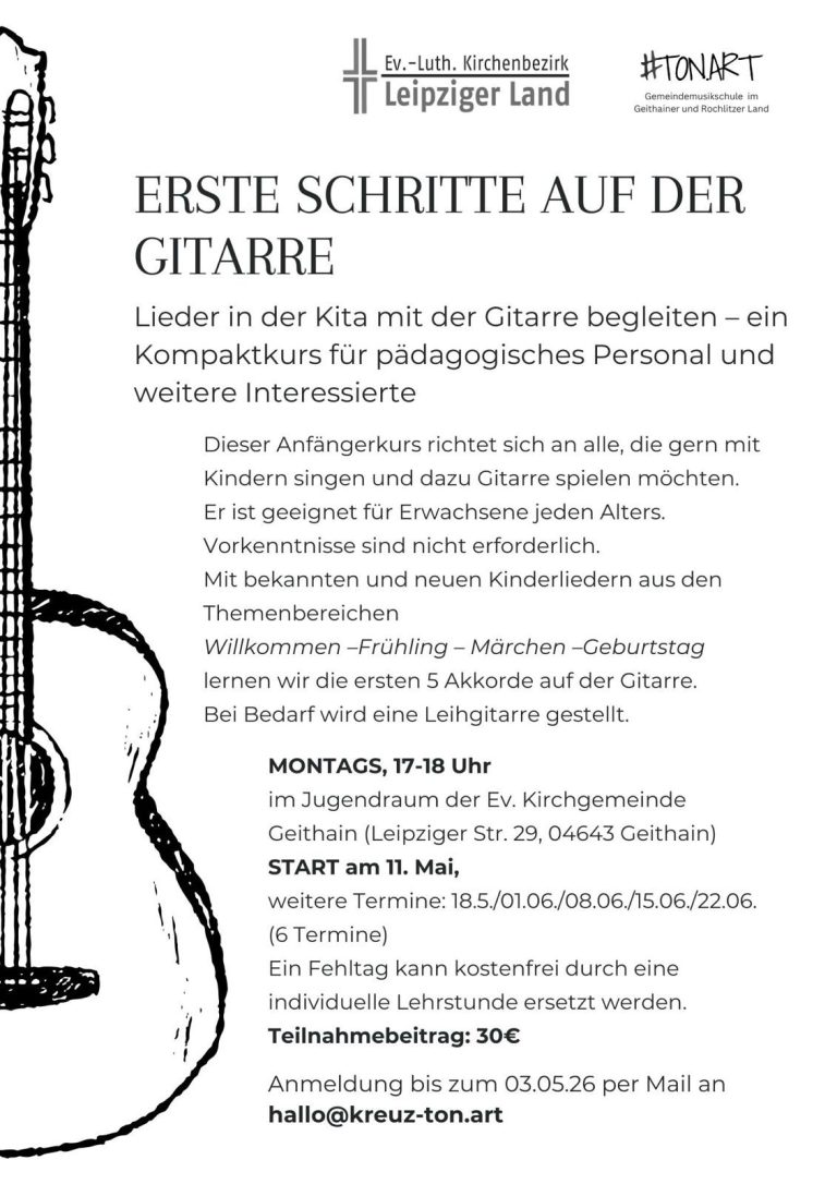 Als Gitarrenlehrer begrüßen wir herzlich Andreas Bergmann, der viele Jahre als Jugendwart für die Landeskirche unterwegs war und nun in Geithain im Jugendraum jungen Gitarristen die Saiten und Zopfmuster erklären wird.